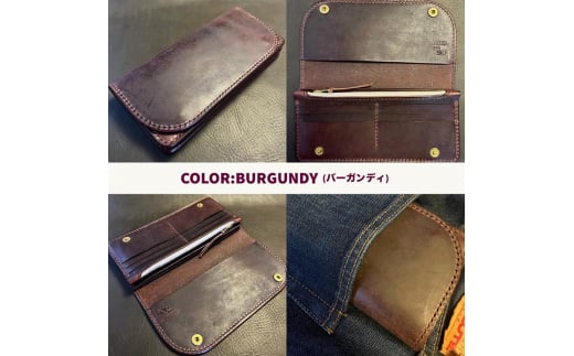 - 【バーガンディ】財布 高級ブライドルレザー ロングウォレット 手縫い カラー3色【ダークブラウン ブラック バーガンディ】|革 革製品 長財布 ロングウォレット ファスナー付き メンズ レディース ハンドメイド