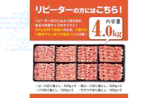 <2025年9月中に発送予定>鹿児島県曽於市産 曽於ポーク切り落とし 合計4.0kg(ロース/バラ/肩ロース/モモウデ切り落とし) 国産 豚肉 切り落とし【Rana】A791-09