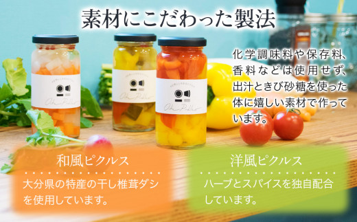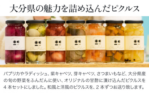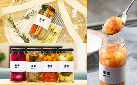 - 季節野菜のピクルス4本セット (和×2、洋×2) | 旬野菜使用 ピクルス 季節野菜 野菜スティック 野菜 やさい 保存食 非常食 漬物 漬け物 付け合せ 規格外野菜 食品ロス フードロス 大分県産 大分県 中津市