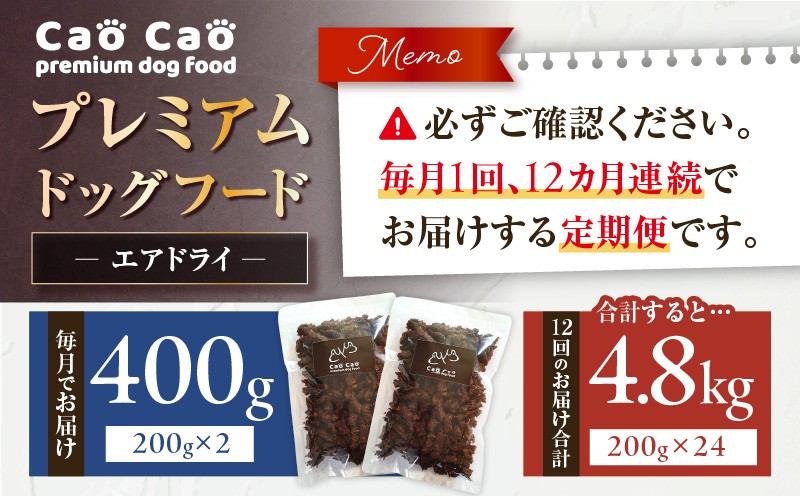 【全12回定期便】Cao Cao プレミアムドッグフード エアドライ 400g(200g×2袋) T035-T01-02