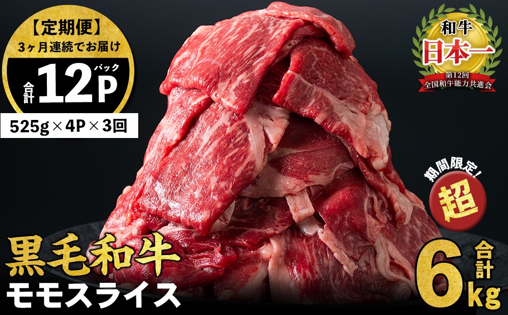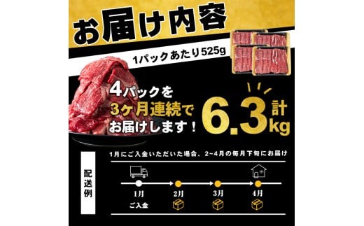 【定期便 全3回】鹿児島県産黒毛和牛赤身モモスライス (計6.3kg・525g×4P×3回) t0084-003-up