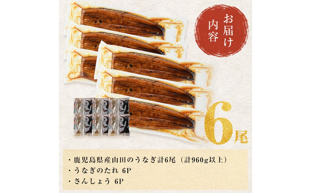 【無薬養鰻】 鹿児島産 山田のうなぎ <計960g以上> (160g以上×6尾) c2-014
