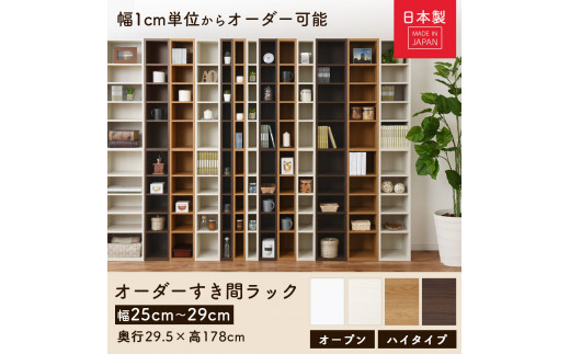 - 【国産家具】オーダーすき間ラック〔幅29cm・オープン・ハイタイプ〕(ウォールナット)すき間ラック 日本製 国産 隙間収納 ラック 本棚 スリム 薄型 縦長 オーダー 棚 隙間収納棚 漫画 収納 オーダーラック キッチン 洗面所 隙間収納ラック 隙間 木製 ABEE02510-29-WAL