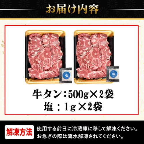 - No.1248-C 訳あり!牛タン(500g×2袋・塩別添え) 牛肉 牛タン 簡単調理 時短 炒めるだけ 炒め物 おかず おつまみ 惣菜 訳あり 薩摩ファームブロスト 末永商店【NBフード】
