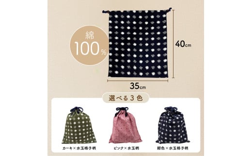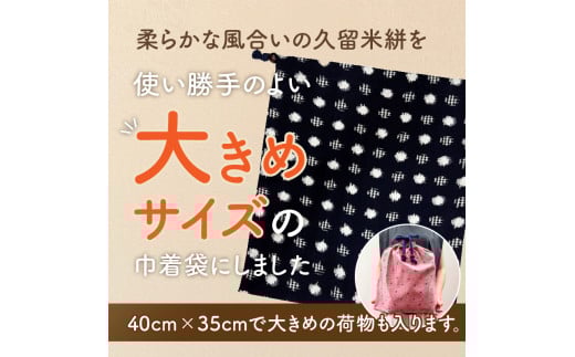 - 久留米絣の大きな巾着袋(ピンク水玉柄)_久留米絣 大きい 巾着袋 縦 40cm × 横 35cm カラー ピンク 水玉柄 綿100% 大きめサイズ 旅行 スポーツ バックインバッグ ギフトバッグ 着替え入れ おもちゃ入れ 福岡県 久留米市 送料無料_Jk071