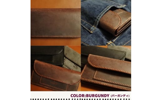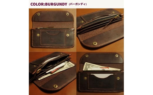 - 【バーガンディ】財布 高級ブライドルレザー ロングトラッカーウォレット 手縫い カラー3色【ダークブラウン ブラック バーガンディ】|革 革製品 長財布 ロングウォレット ファスナー付き メンズ レディース ハンドメイド