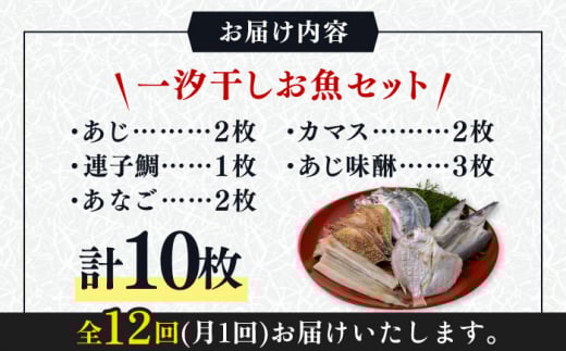 - 【全12回定期便】対馬 一汐干し お魚 セット 5種10枚 詰め合わせ 《 対馬市 》【 うえはら株式会社 】新鮮 アジ 穴子 カマス 連子鯛 干物 海産物 朝食 冷凍 [WAI035]