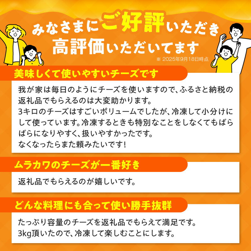 【ムラカワチーズ】JUCOVIA ブレンドチーズ 1.2kg【小分け 400g×3P 普段使い 高評価 ちーず】 099H3526