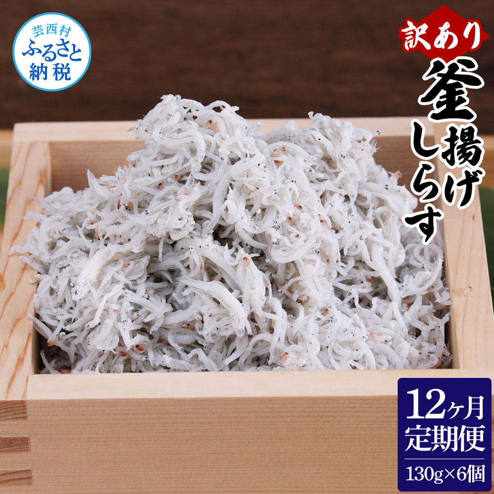 <12ヶ月定期便>訳あり 釜揚げシラス 130g×6個 定期便 定期コース 12ヶ月 しらす シラス 釜揚げ 新鮮 塩分控えめ 離乳食 わけあり ワケあり 不揃い しらす丼 海鮮丼 お茶漬け