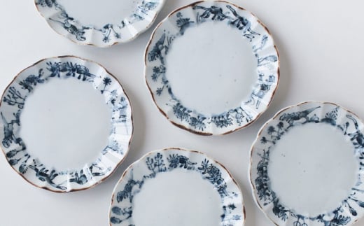 - 【波佐見焼】DINOSAUR 輪花小皿 5点セット【studio wani】 [MB98]