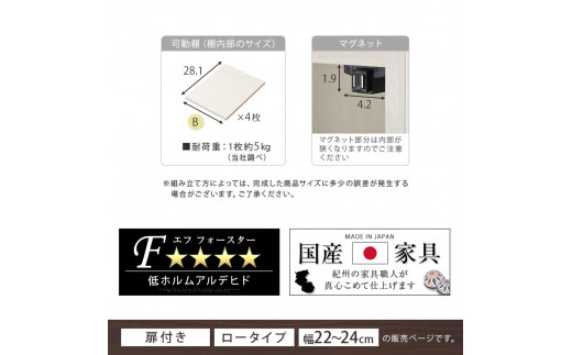 - 【国産家具】オーダーすき間ラック〔幅23cm・扉付き・ロータイプ〕(ホワイト)すき間ラック 収納棚 扉付き スリム 約 奥行30 高さ90 ロータイプ オーダーラック キッチン 洗面所 ラック 薄型 木製 オーダー 棚 扉付 5段 隙間収納 ABE400082-23-WH