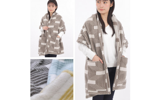 - 【ポケット付】洗えるタスマニアラムウール混大判ストール 70×180cm OTW-7018-BR