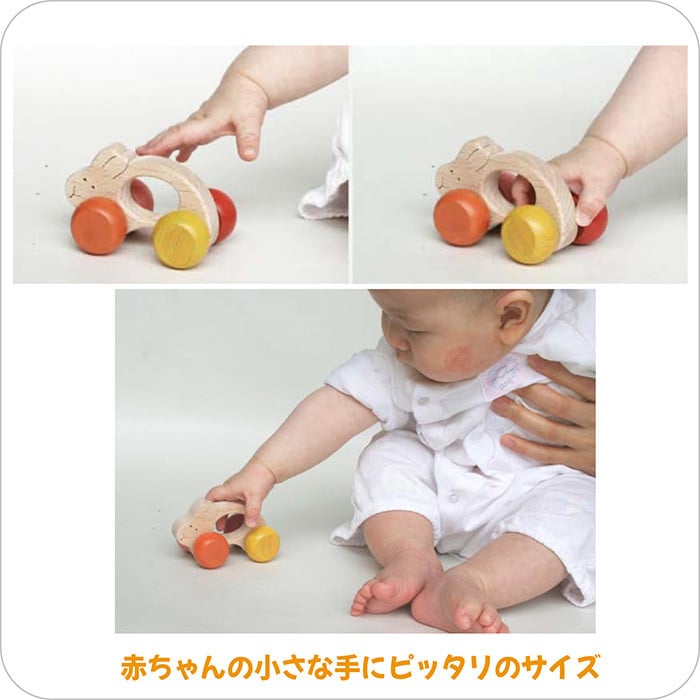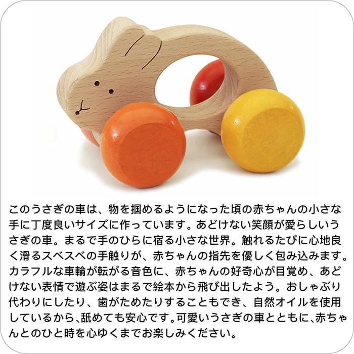 - 木のおもちゃ/うさぎ車 赤ちゃん おもちゃ 車 はがため おしゃぶり 知育玩具 出産祝い 日本製 おしゃれ プレゼント 木製 玩具 [№5312-0078]
