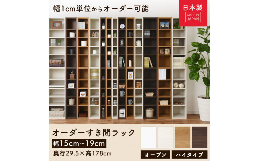 【国産家具】オーダーすき間ラック〔幅16cm・オープン・ハイタイプ〕(ホワイトウッド)すき間ラック 日本製 国産 隙間収納 ラック 本棚 スリム 薄型 縦長 オーダー 棚 隙間収納棚 漫画 収納 オーダーラック キッチン 洗面所 隙間収納ラック 隙間 木製 ABEE01510-16-WWO