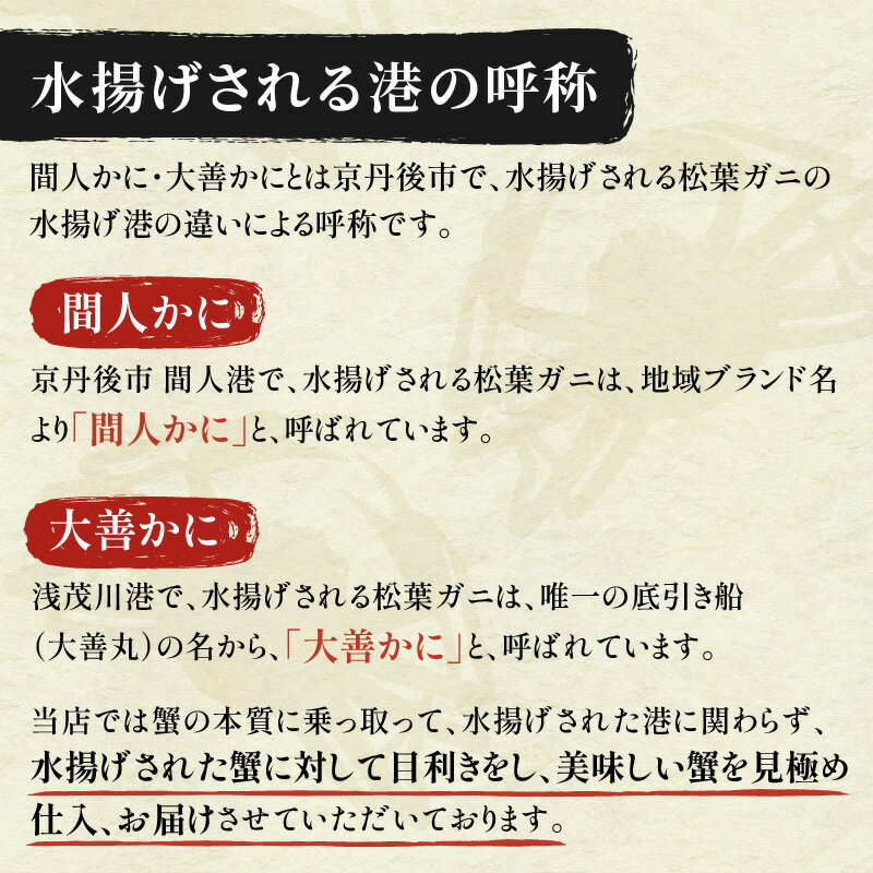 【ふるさと納税】【蟹の匠 魚政】京丹後市産 未冷凍 茹で間人ガニ大善ガニ 特撰 2匹セット 小サイズ 中サイズ 大サイズ (2025年11月~12月発送) (2026年1月~発送) 選べる 内容量 配送時期 松葉蟹 大善ガニ ボイル 松葉ガニ 蟹味噌 かにみそ かに 蟹 国産 海産物 海の幸