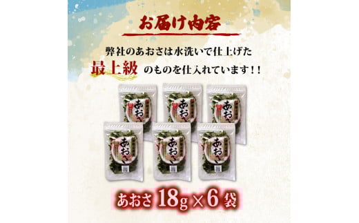 あおさ 18g 6袋 セット 小分け 個包装 海藻 新鮮 朝食 朝 ご飯 米 味噌汁 お吸い物 スープ 天ぷら かき揚げ お茶漬け うどん ラーメン パスタ お手軽 簡単 簡単調理 三重 伊勢志摩 志摩 みえ しま いせしま