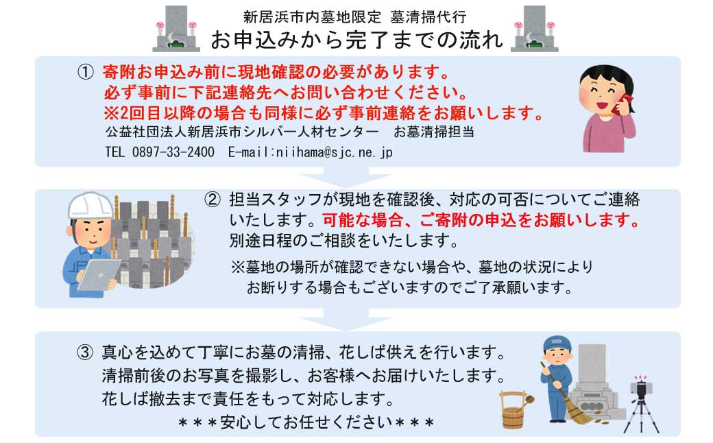 - 墓掃除 ふるさとのご先祖にお気持ちをお届けします ※事前連絡してください (新居浜市内墓地限定)