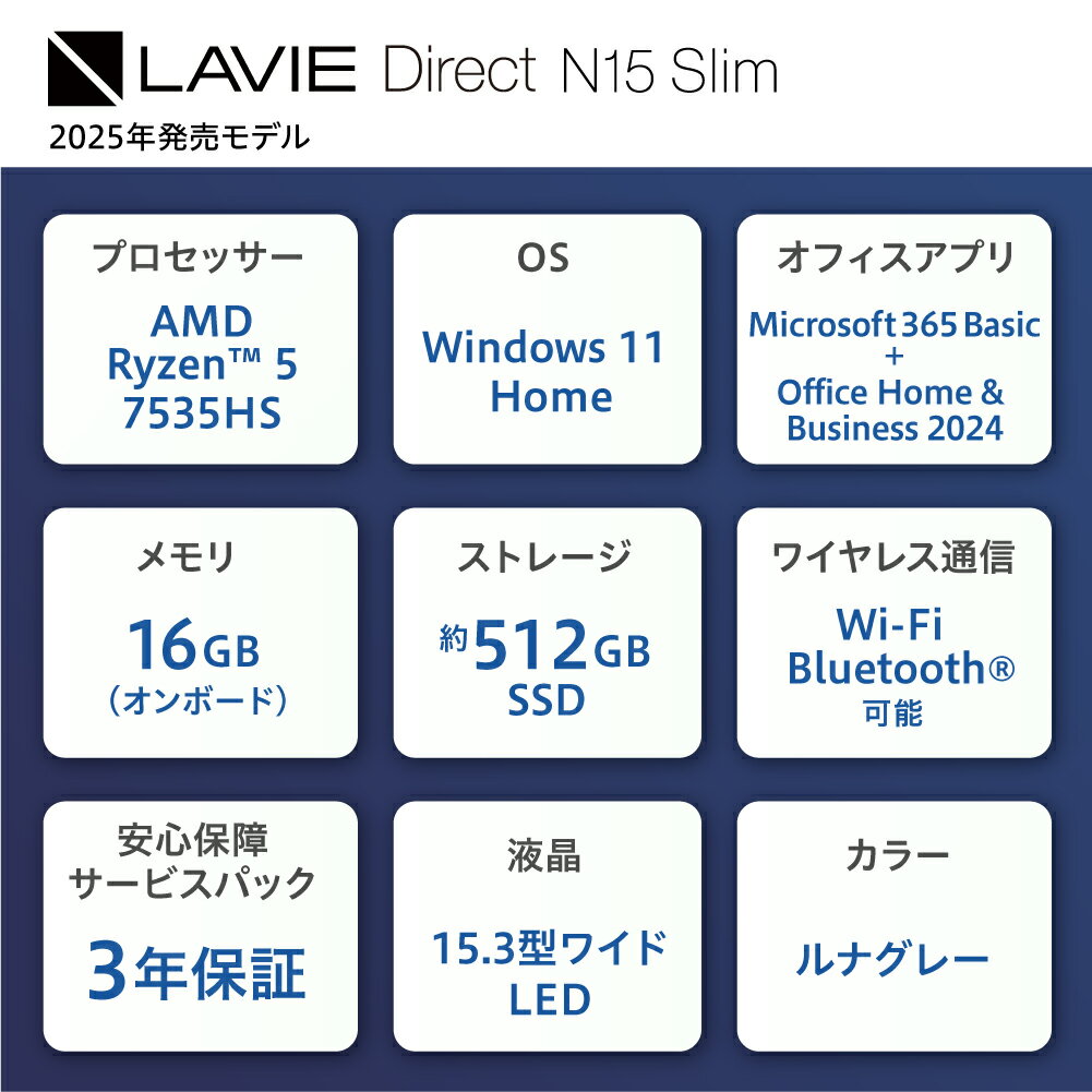 【ふるさと納税】【新品】パソコン LAVIE Direct N15Slim-① 2025年発売モデル 15.3型ワイド LED IPS液晶 Windows 11 Home メモリ16GB 約512GB SSD ノートパソコン ノート PC 新生活 山形県 米沢市 送料無料