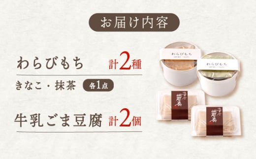 牛乳ごま豆腐 2個 & わらびもち(きな粉・抹茶)2個 【酒菜 谷】 [OBC023]