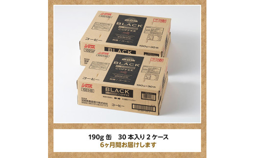【6ヶ月定期便】サンA無糖コーヒー190g缶30本入り×2ケース 【 飲料 コーヒー 無糖 珈琲 長期保存 缶 宮崎県産 川南町 持運び簡単 送料無料 】