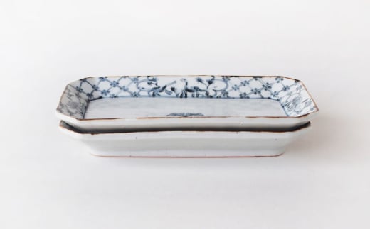 - 【波佐見焼】DINOSAUR 八角長角皿 2点セット【studio wani】 [MB95]