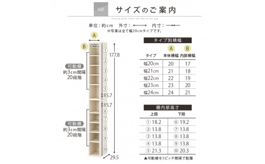 - 【国産家具】オーダーすき間ラック〔幅20cm・オープン・ハイタイプ〕(ホワイトウッド)すき間ラック 日本製 国産 隙間収納 ラック 本棚 スリム 薄型 縦長 オーダー 棚 隙間収納棚 漫画 収納 オーダーラック キッチン 洗面所 隙間収納ラック 隙間 木製 ABEE02010-20-WWO