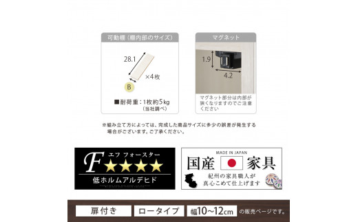 - 【国産家具】オーダーすき間ラック〔幅10cm・扉付き・ロータイプ〕(ホワイト)すき間ラック 収納棚 扉付き スリム 約 奥行30 高さ90 ロータイプ オーダーラック キッチン 洗面所 ラック 薄型 木製 オーダー 棚 扉付 5段 隙間収納 ABE400078-10-WH