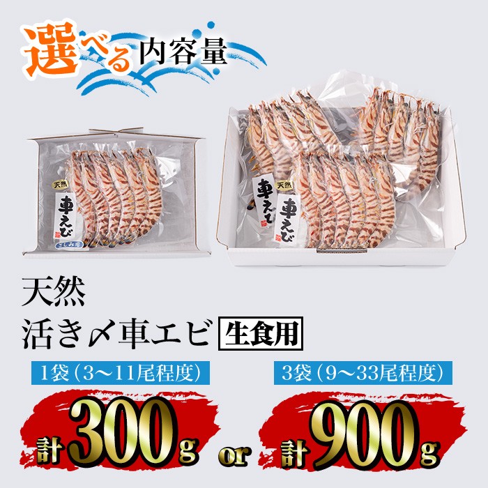 - <内容量が選べる>天然 活き〆車エビ 生食用 (300g・計900g) エビ 海老 車海老 車エビ 冷凍 刺身 さしみ 天ぷら 塩焼 バーベキュー 国産 大分県産 大分県 鶴見食賓館 【opad007・opad008】【鶴見食賓館】