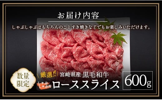 - [数量限定 ]厳選!!宮崎県産黒毛和牛 しゃぶしゃぶ用ローススライス 600g【C316】