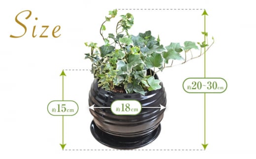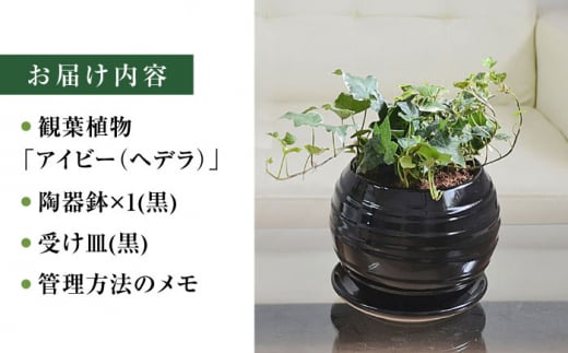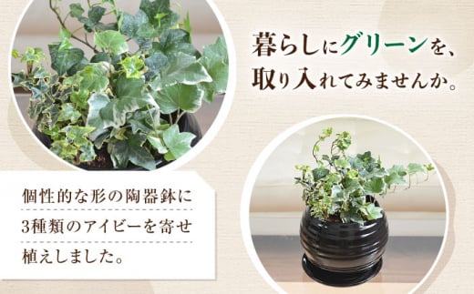 観葉植物 アイビー ヘデラ 3種 寄せ植え ボール形 陶器 鉢植え (黒) インテリア ギフト / 観葉 植物 インテリア おしゃれ / 大村市 /琴花園[ACYK030]