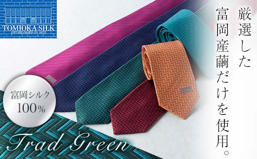 <高級純国産 富岡シルク100%> ネクタイ (ヘリンボン)<トラッドグリーン> 富岡産 シルク 絹 グリーン 緑 国産 ファッション 贈り物 ギフト F21E-370