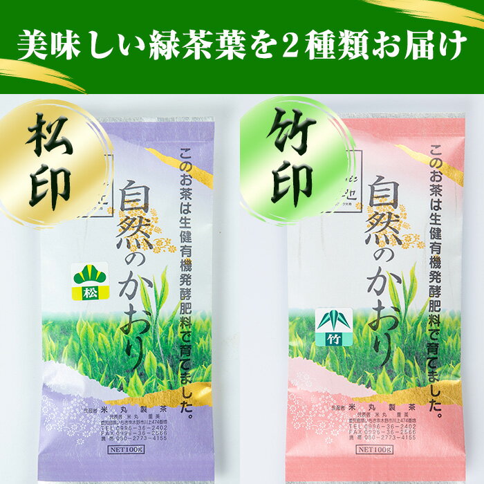 - 【ふるさと納税】鹿児島緑茶「自然のかおり」セット(緑茶9袋、粉末緑茶2袋)30年以上前から有機栽培に取り組んで育てた緑茶です!【米丸製茶】