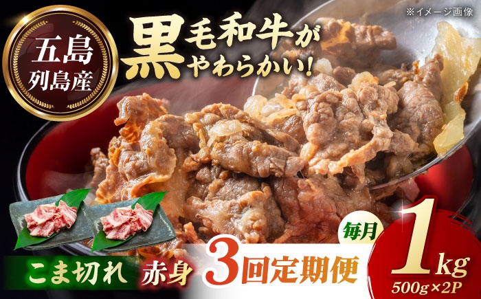 【3回定期便】五島列島産 黒毛和牛 こま切れ 1kg 五島市/山口Farm [PGJ062]