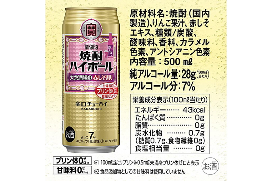 - BG135 タカラ 焼酎ハイボール 大衆酒場の赤しそ割り 500ml×24本 [ タカラ 宝 寶 Takara 焼酎 酎ハイ チューハイ ハイボール しそ 紫蘇 7% 人気 おすすめ ギフト プレゼント ご自宅用 日常使い 普段使い 送料無料 健康志向 プリン体ゼロ 糖質ゼロ 甘味料ゼロ プリン体0 糖質0 甘味料0 みつい 長崎県 島原市 ]