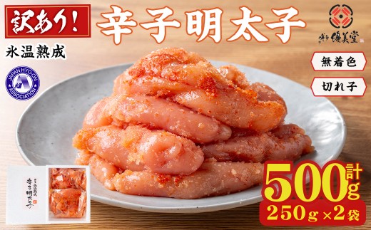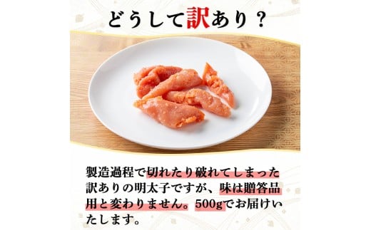 <訳あり>氷温熟成辛子明太子 無着色 切れ子 切小 (250g×2袋×1箱 計500g) 明太子 無着色 切れ子 海鮮 お土産 贈答用 小分け ご飯のお供 おつまみ おかず 惣菜 海鮮 福岡【ksg1723】【くしだ企画】