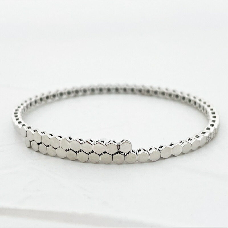 【ふるさと納税】< 甲府ジュエリー > ブレスレット ダイヤモンド プラチナ 950 K18 イエローゴールド ピンクゴールド 1カラット バングル ハニカム 形状記憶 誕生日 ギフト プレゼント ラッピング ケース付 鑑別書付 保証書付 k001-529