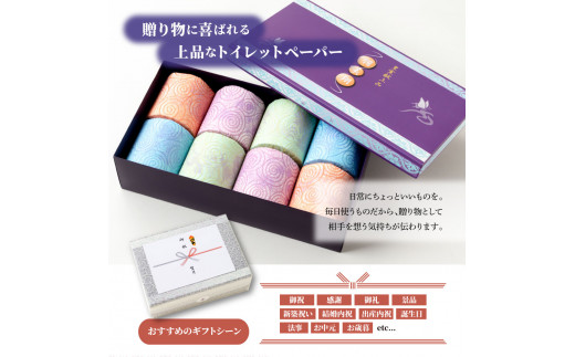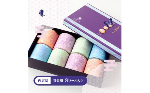 - トイレットペーパー 無香料 天然パルプ100% 羽美翔 8ロール入り 30m ダブル 2枚重ね プリント入り 柄入り 土佐和紙 上品 皇室献上品 日用品 消耗品 日本製 プレゼント ギフト