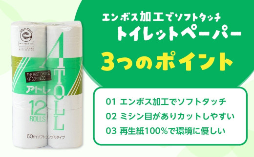 河村製紙 再生紙100% アトレ トイレットペーパー シングル 12Rx4パック
