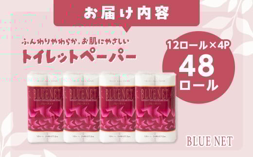- 河村製紙 再生紙100% ブルーネット トイレットペーパー ダブル 12Rx4パック