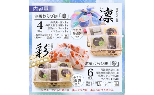 涼菓 わらび餅 「彩」 6個 紙袋付き : 4種類 ( 丹波黒大豆 丹波大納言抹茶 完熟マンゴー シャインマスカット ) 丹波 セット わらびもち 和菓子 本わらび 黒豆 大納言小豆 舞鶴抹茶 フルーツ 包装 熨斗 サマーギフト お中元 お歳暮 贈り物 プレゼント ギフト プチ贅沢