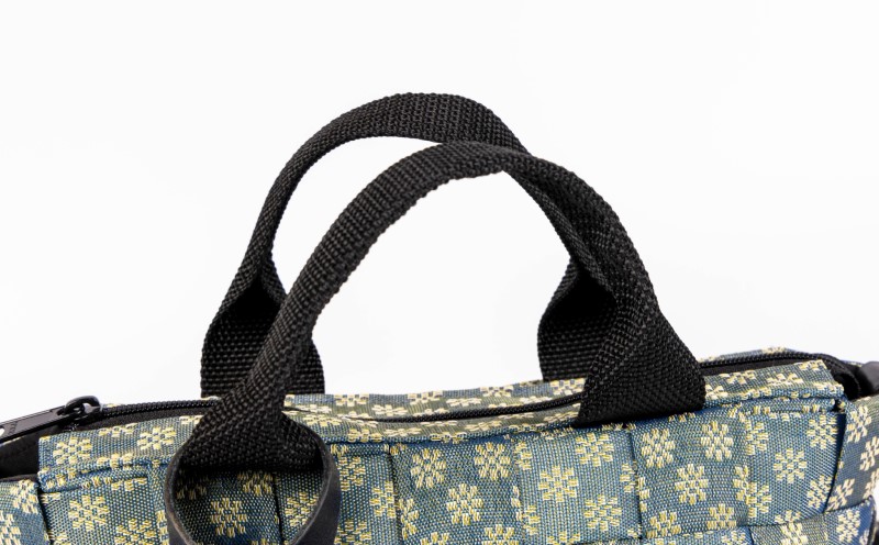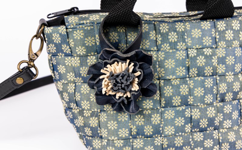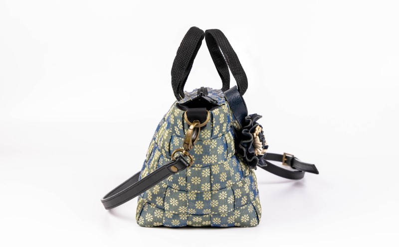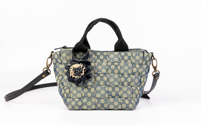 - 畳縁編込み ショルダーバック (ブルー小花)