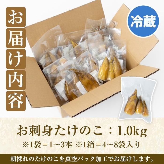 - 【土日祝着】<先行予約受付中!2026年3月上旬以降順次発送予定>お刺身たけのこ(計1kg) 国産 鹿児島県産 朝採れ タケノコ 竹の子 筍 真空パック 野菜 春 旬【上野食品】akn008-06-B