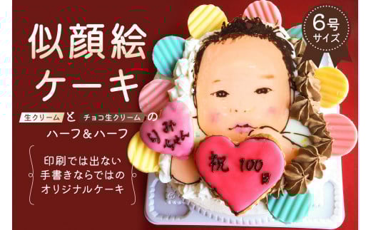 - 似顔絵ケーキ(生クリームとチョコ生クリームケーキのハーフ&ハーフ) 【プレゼント 似顔絵をデコレーション 冷凍 誕生日 誕生日ケーキ お祝いケーキ お祝い 桃 スイーツ デザート 手作り 似顔絵 】