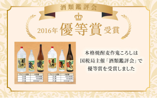KU189【毎月数量限定】本格焼酎麦作鬼ころし 4本セット ( 900ml×4本)