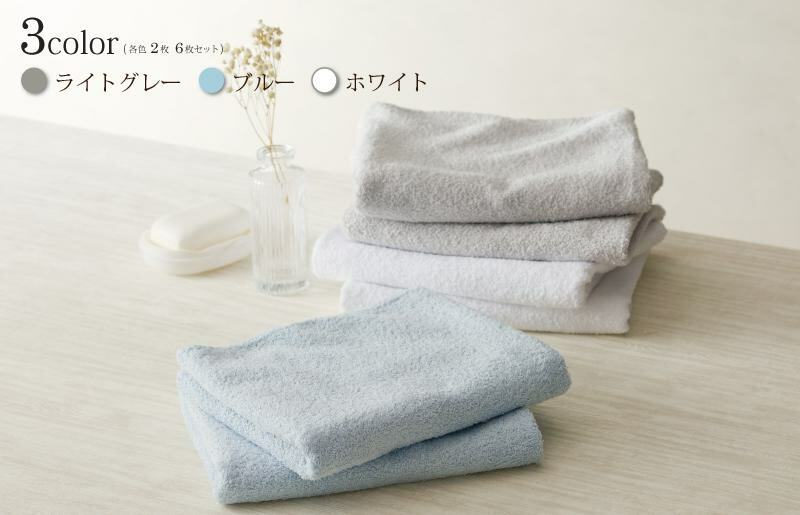 - 【スピード発送】ホテルスタイル ミニバスタオル 6枚 ライトグレー ブルー ホワイト 40×100cm 【泉州タオル 国産 吸水 普段使い シンプル 日用品】 G2444