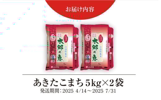 契約栽培【冷温貯蔵米】 令和6年産 水郷の恵 あきたこまち(精米) 5kg×2袋 KTRE004