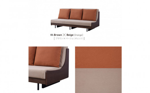 - ソファベッド セミダブル 幅200cm フォース Exごろ寝ソファ ごろ寝ソファ <03.ブラウン×ベージュ(オレンジ)> 【モーブル/大川家具】