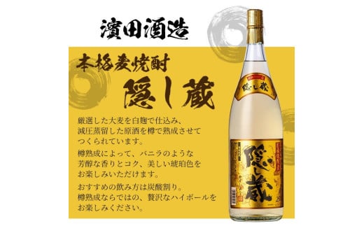 - 本格麦焼酎 「隠し蔵(かくしぐら)」 1800ml×4本 25度 セット 鹿児島 本格麦焼酎 樽で 貯蔵熟成 した琥珀色の 本格麦焼酎 濵田酒造 傳藏院蔵 【C-214H】