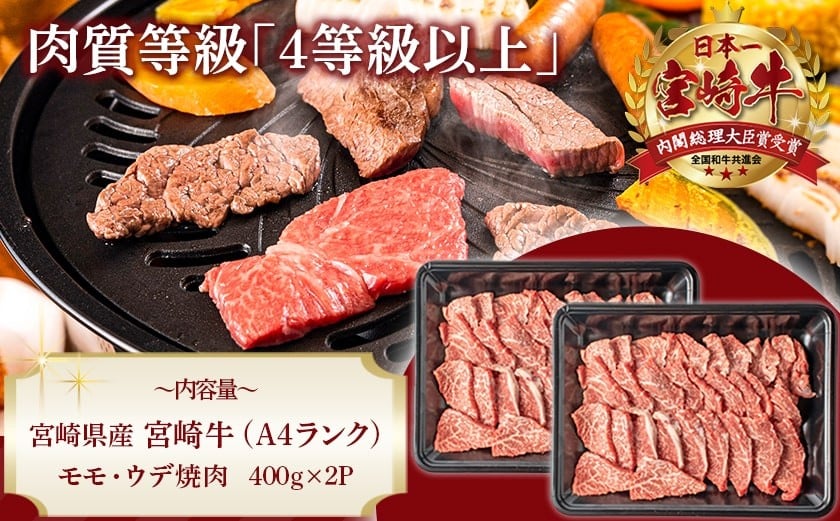 宮崎牛ウデ・モモ焼肉800g_AC-2603_(都城市) 牛肉 宮崎牛 A4ランク 4等級 モモ ウデ 焼肉用 400g×2パック 計800グラム 低カロリー 冷凍