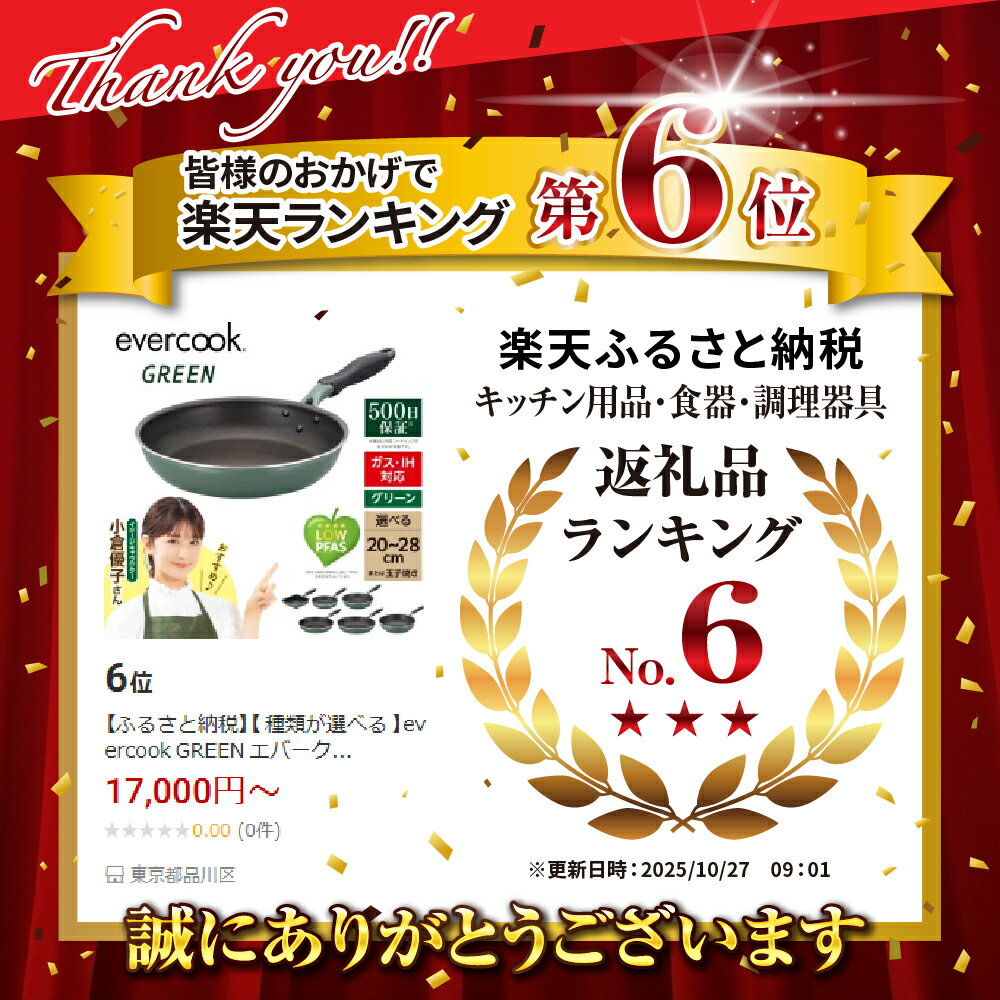 - 【ふるさと納税】【 種類が選べる 】evercook GREEN エバークック グリーン IH フライパン ( 20cm / 24cm / 26cm / 28cm / 28cm 深型 / 玉子焼き ) / こびりつきにくい ツルすべ 日用品 調理器具 卵焼き器 調理 アルミ ノンスティック IH ガス火 東京都 品川区